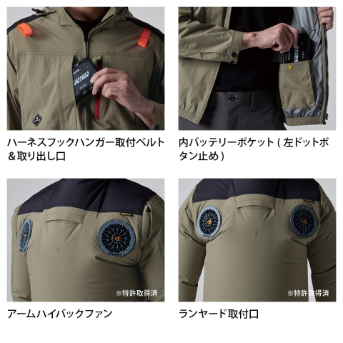 【邪魔にならない】フルハーネスなどを着用していてもファンが邪魔にならない!
