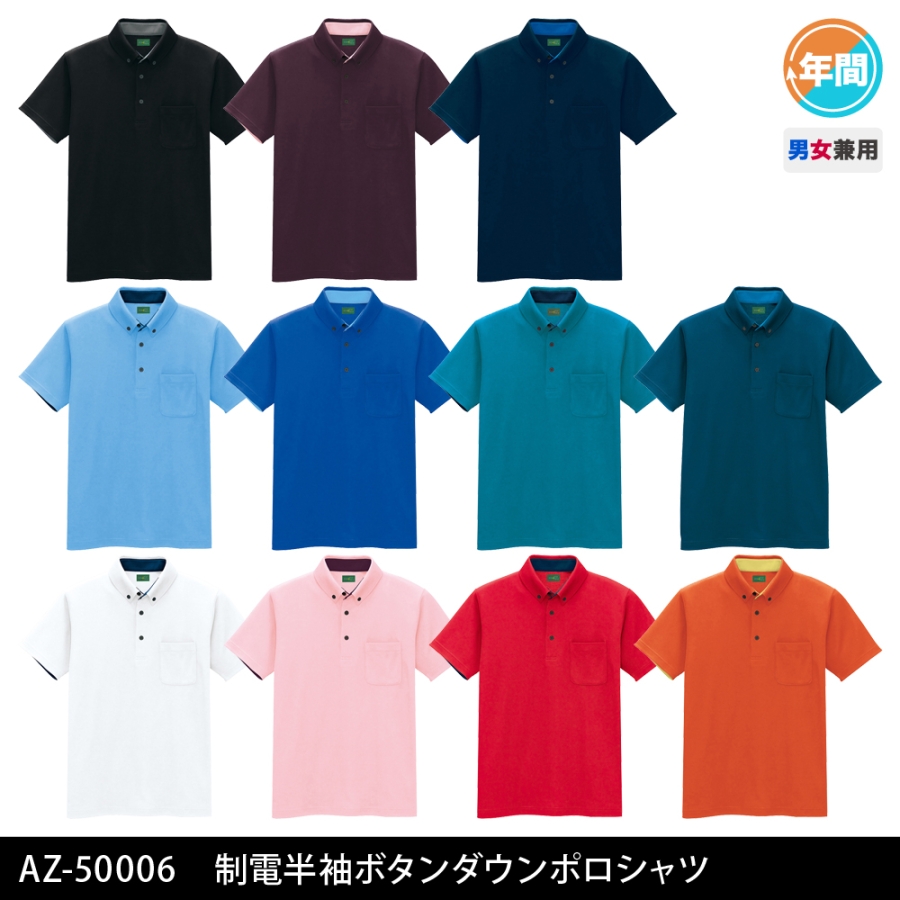AZ-50006 制電半袖ボタンダウンポロシャツ