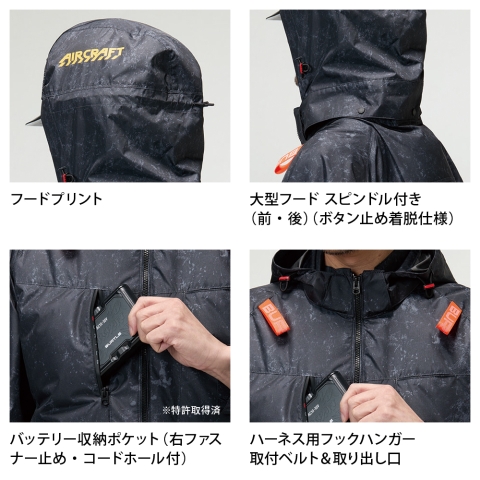 フルハーネスに対応した本格ワークスペックモデルながら、カジュアルなマウンテンパーカーデザインはワークシーンからデイリーまで幅広いシーンをフォロー